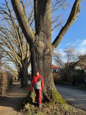Wir schlendern gemütlich entlang des Garagenkunstpfads mit Blick auf die Kleingärten und das Hundertwasserhaus in Richtung Dieburgerstraße, bevor wir entlang einer Allee mit ein paar sehr alten Eichen zur Gichtmauer gelangen. Von dort aus sehen wir uns zuerst das Hartig Denkmal an und gehen dann langsam über das Forsthaus Fasanerie mit seinen Skulpturen zum Oberwaldhaus. Über das Oberfeld (mit Kunst und Totholzinseln) wandern wir zur Rosenhöhe. Danach gehen wir über die Mathildenhöhe und das Darmstadtium zur Sitte. Hier kehren wir ein.
